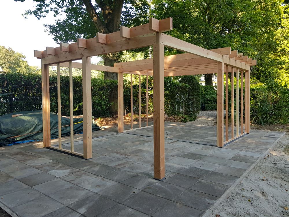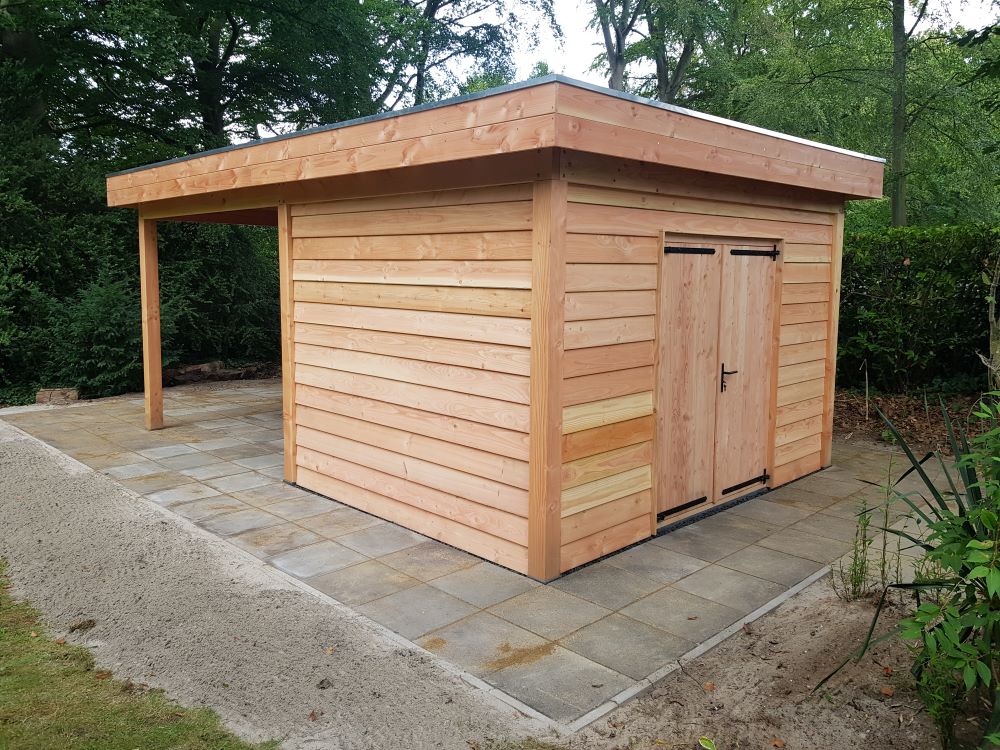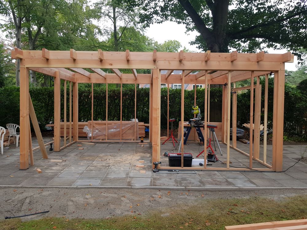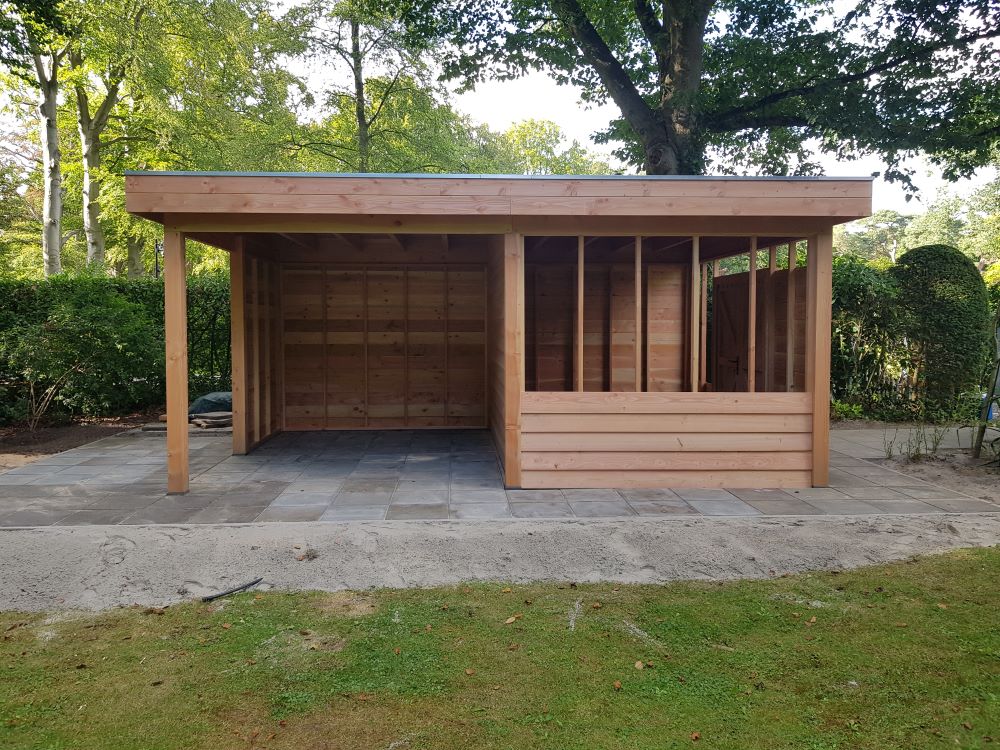 Maatwerk Douglas tuinhuis met overkapping in Huizen