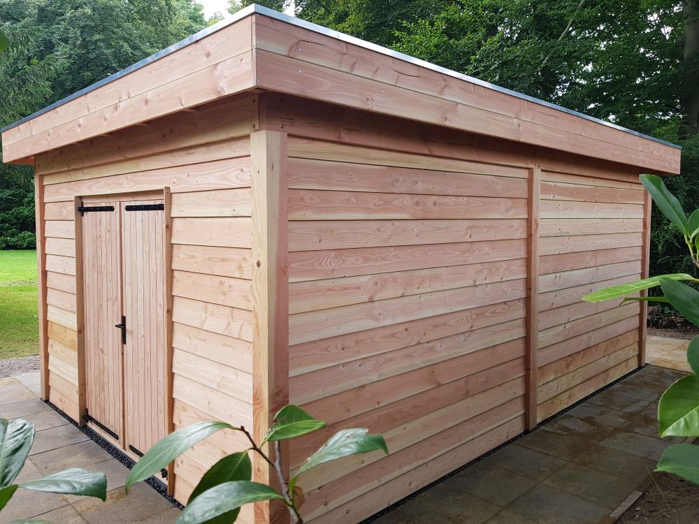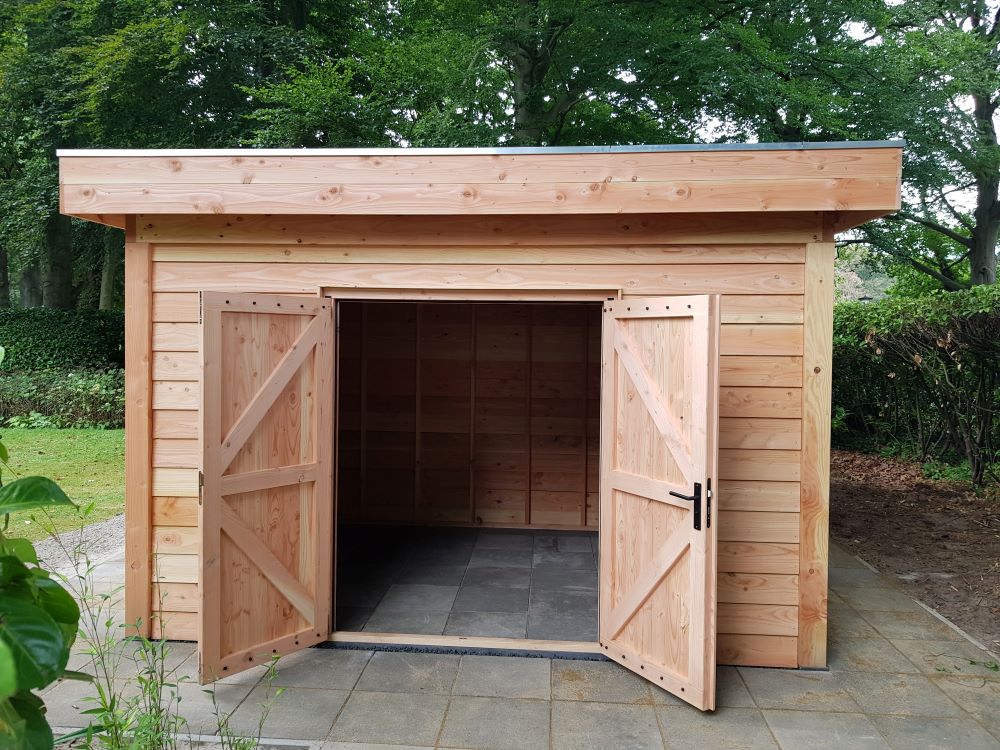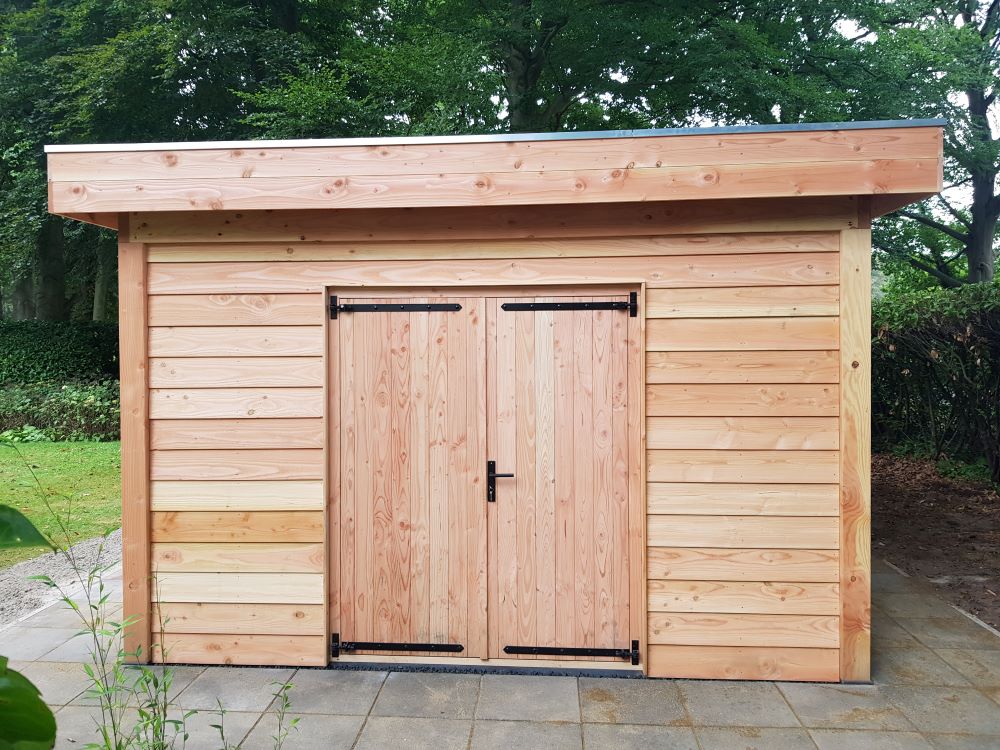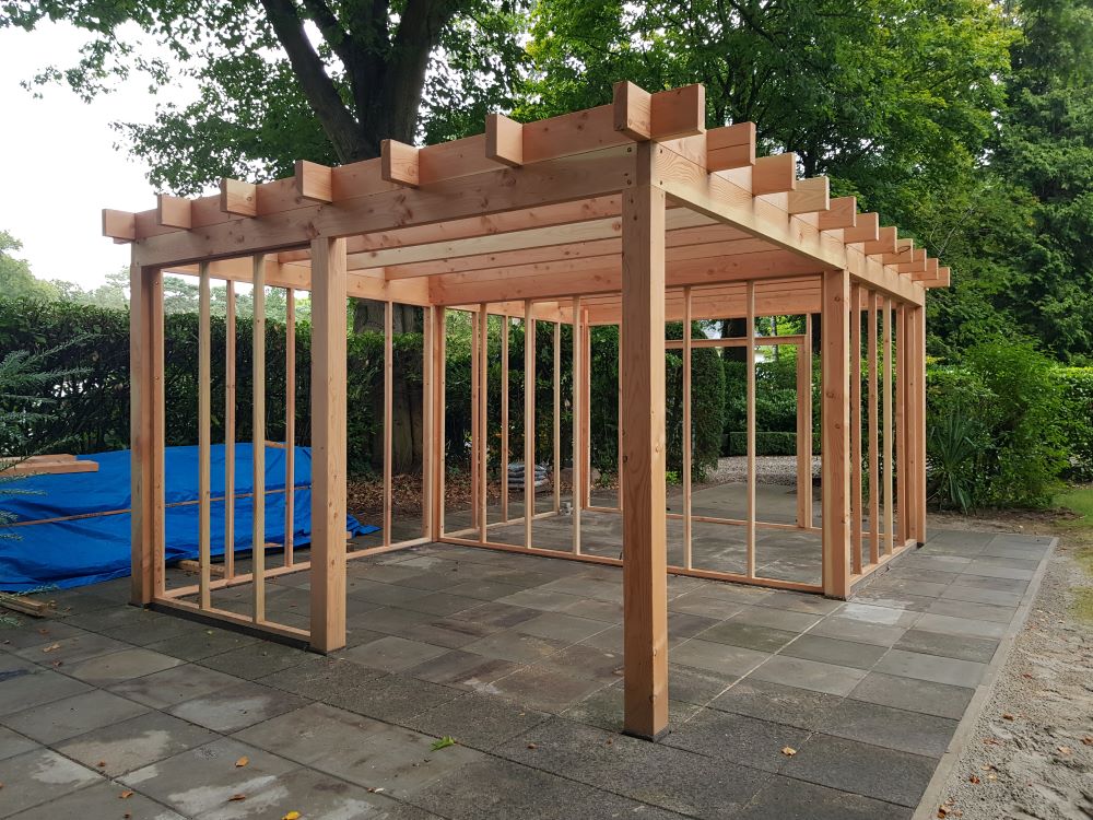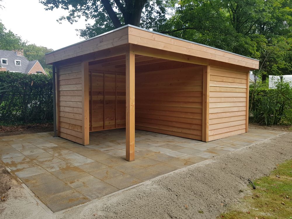 Maatwerk Douglas tuinhuis met overkapping in Huizen