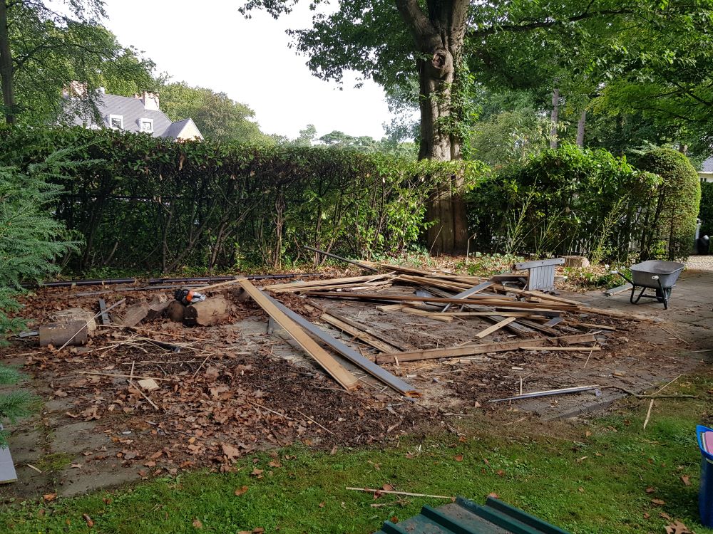 Op de locatie stond een verouderd tuinhuis. Deze hebben wij vakkundig gedemonteerd en afgevoerd met een container, zodat de ruimte volledig vrij was voor de nieuwbouw.