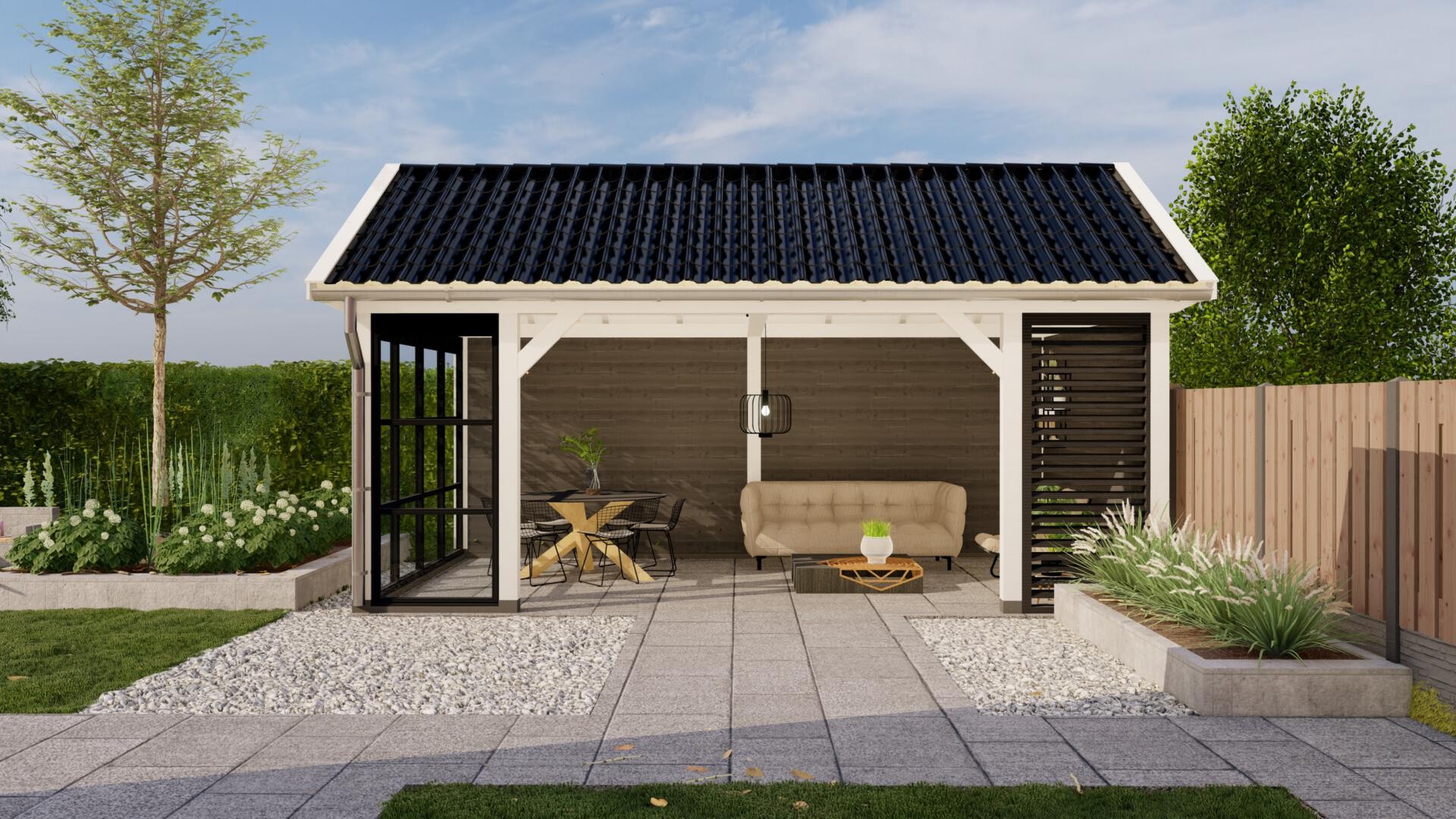Met onze 3D configurator ontwerpt u geheel vrijblijvend het buitenverblijf van uw dromen. Pas afmetingen, dakvormen en opties eenvoudig aan en bekijk direct het resultaat. Heeft u specifieke wensen of vragen? Ons team denkt graag met u mee voor een oplossing op maat.