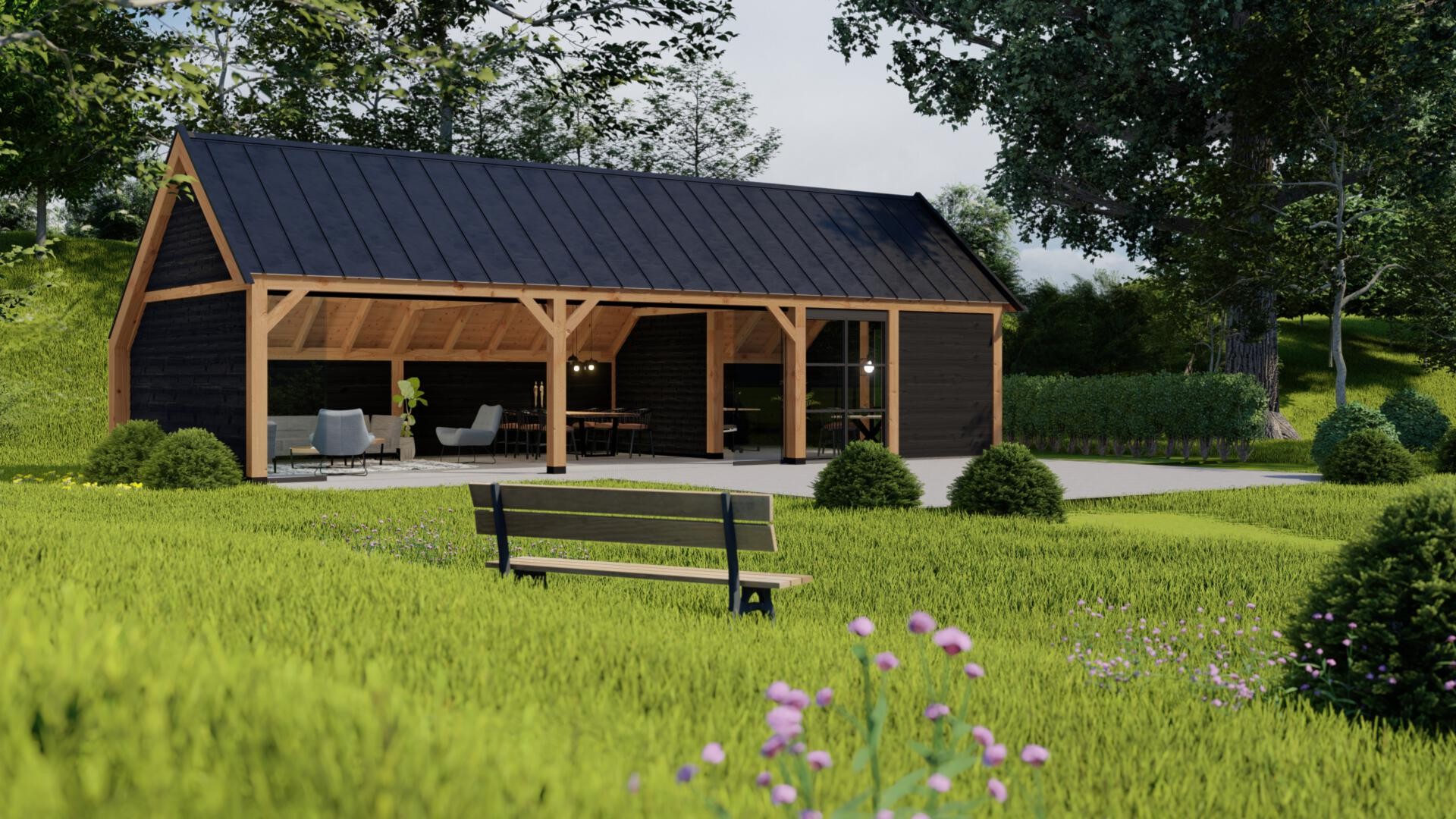 Het zadeldak bestaat uit twee gelijke dakvlakken en geeft uw buitenverblijf een tijdloze, landelijke uitstraling. Deze klassieke dakvorm biedt extra ruimte en een fraaie afwatering.