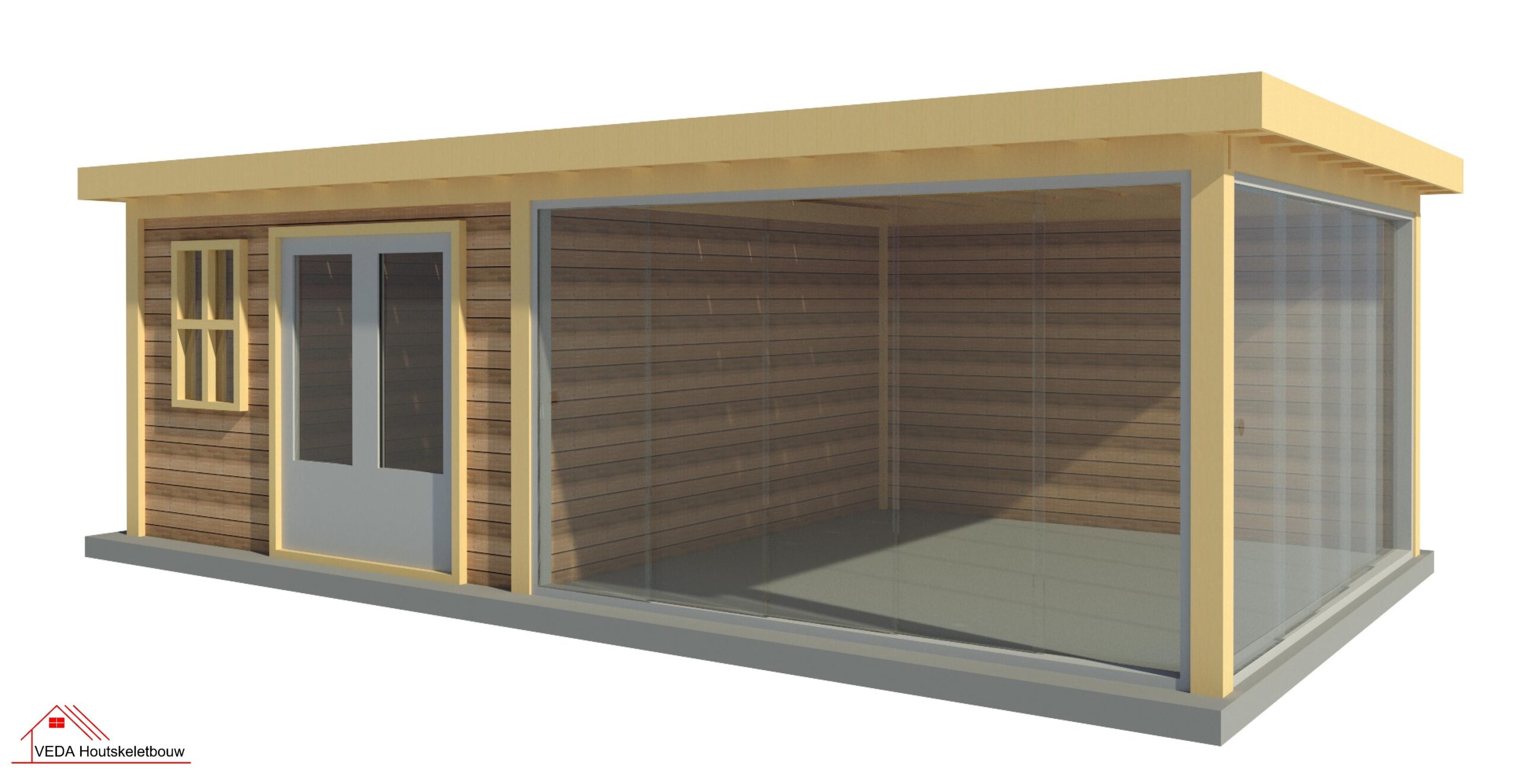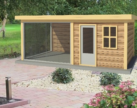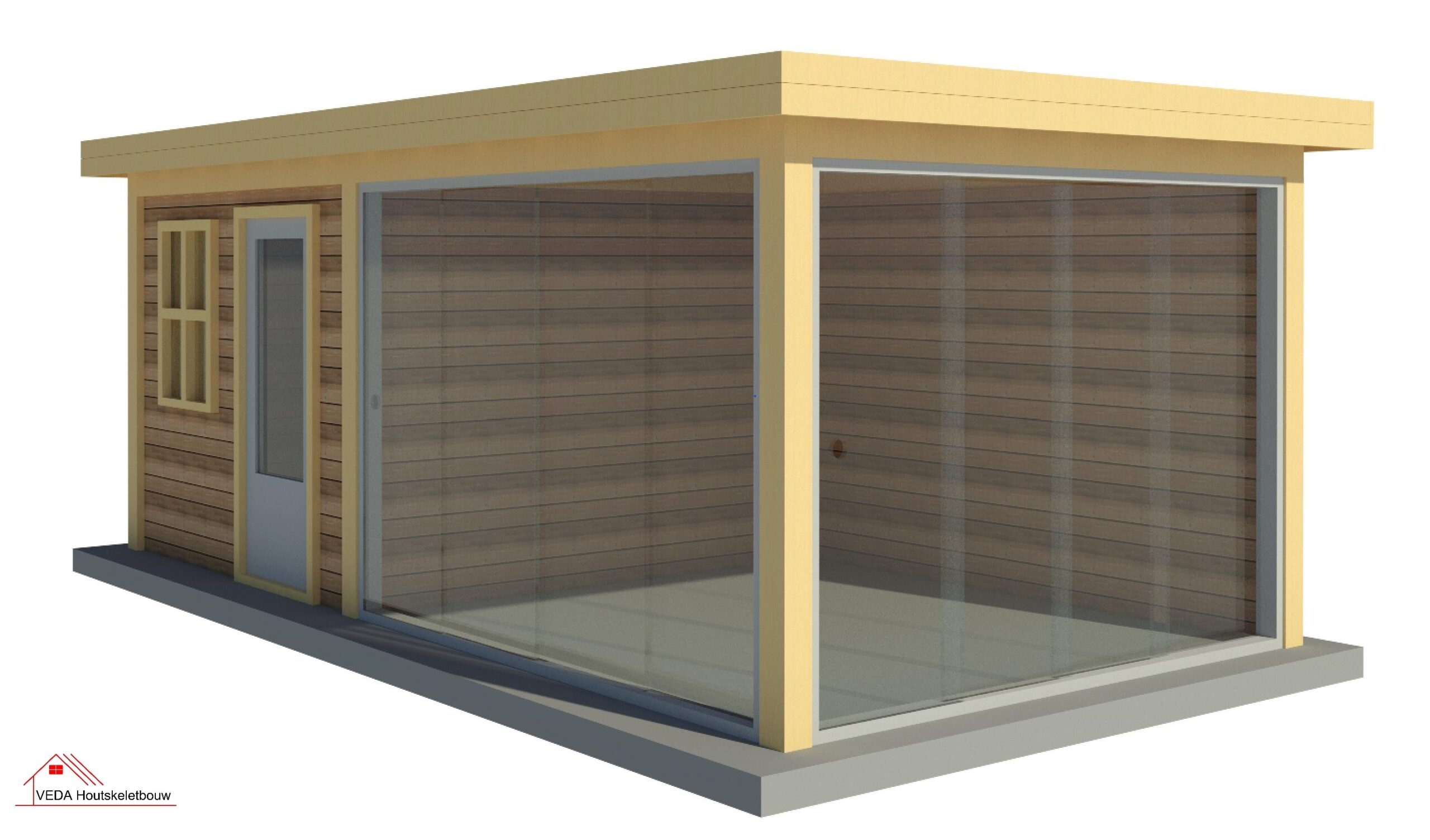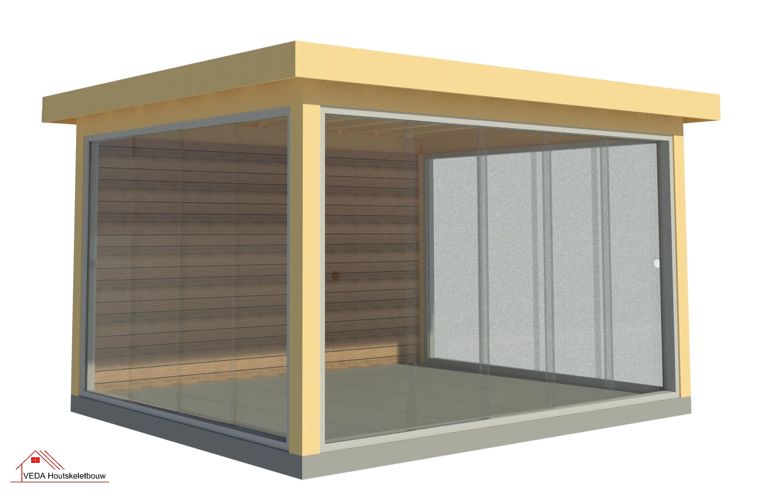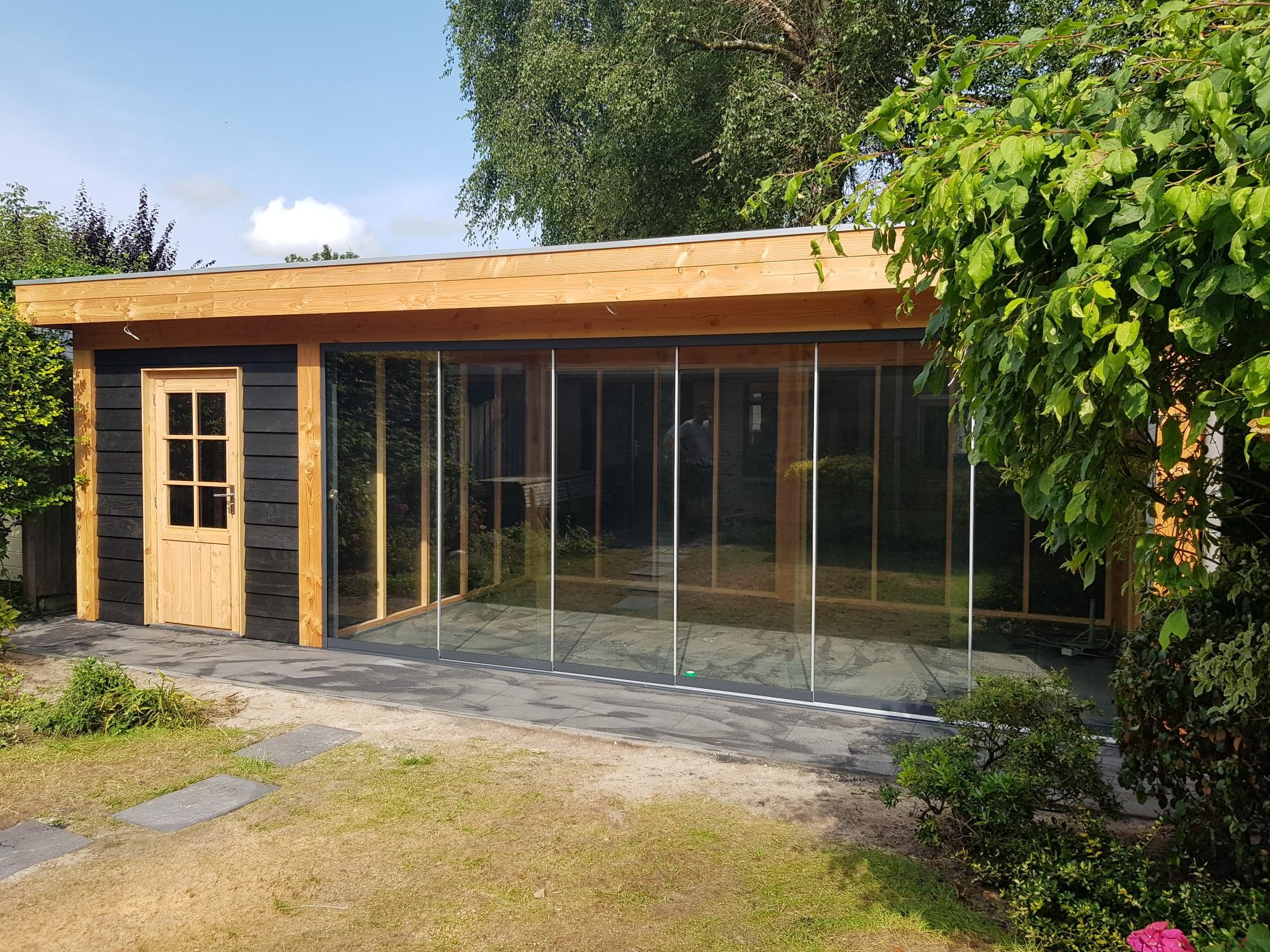 Home » Douglas Buitenverblijven » Douglas tuinhuis met glas schuiframen - INCLUSIEF MONTAGE