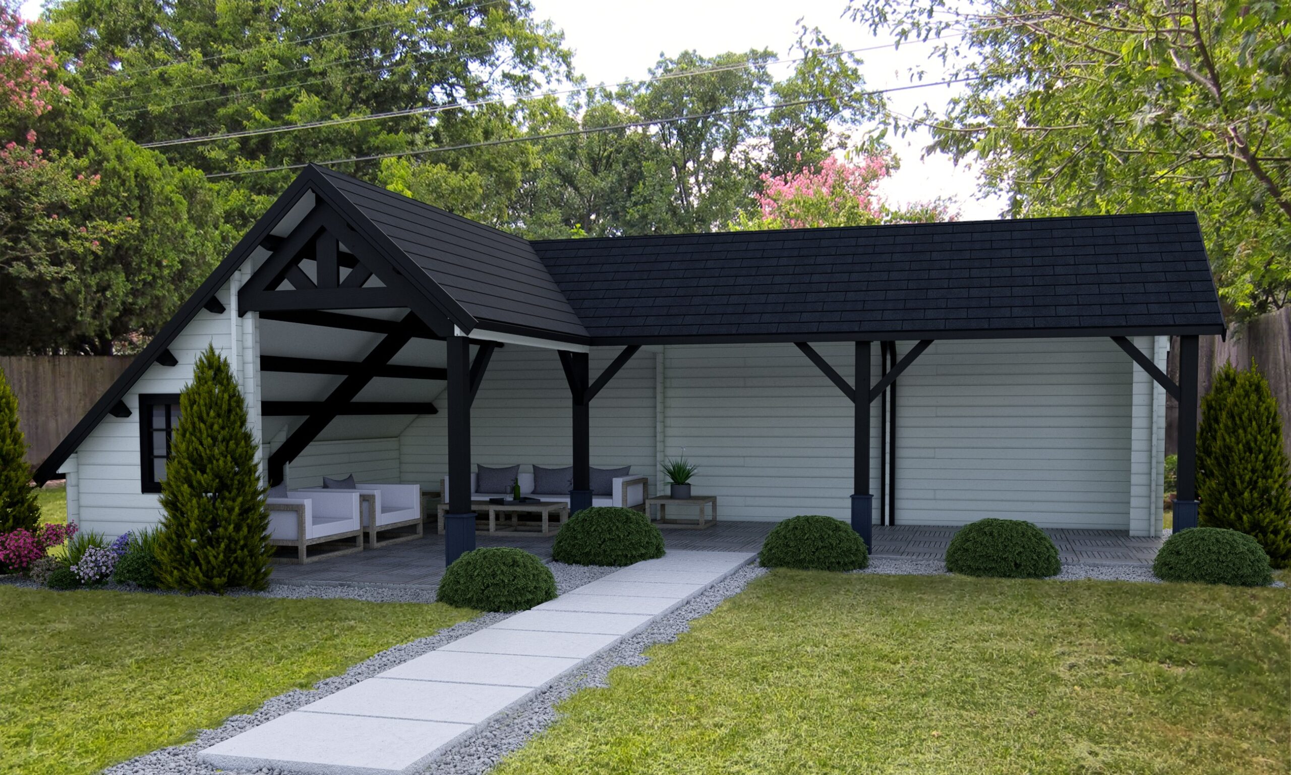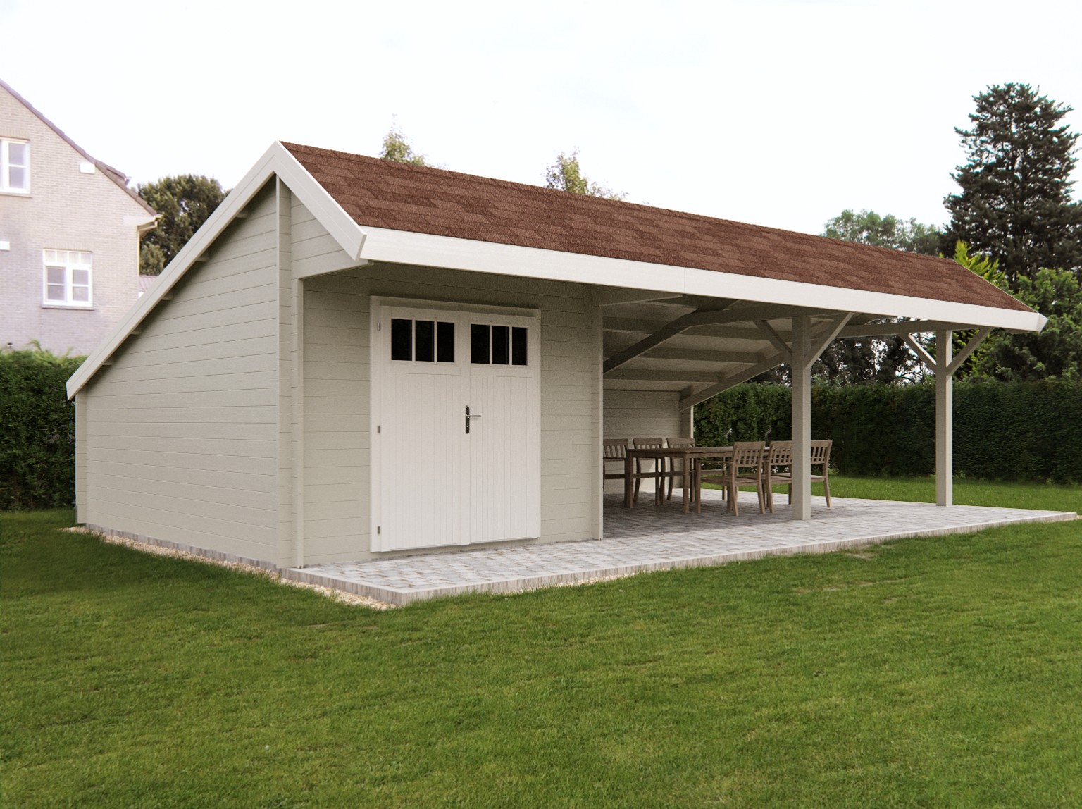 • Een zorgvuldig geselecteerd assortiment Grandcasa kapschuren en blokhutten