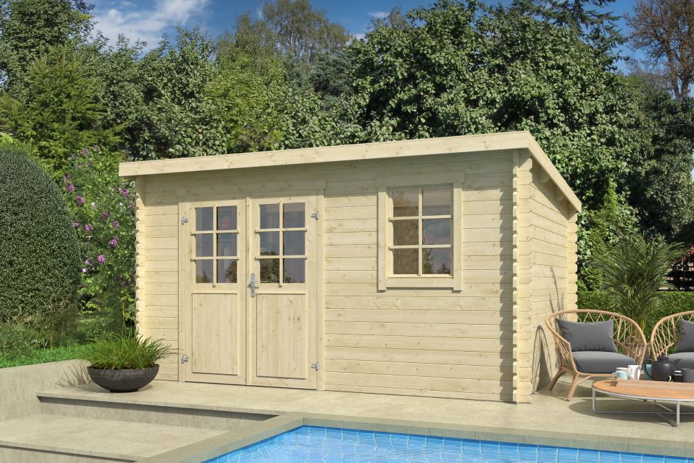 De meeste traditionele blokhutten en tuinhuizen met een lessenaarsdak zijn uitgevoerd in 28 mm dik Noord-Europees vurenhout en met hoekverbindingen. De blokhutten worden geleverd met degelijke deuren en ramen voorzien van hang en sluitwerk. Een lessenaarsdek is een type tuinhuis dak wat schuin afloopt, in tegenstelling tot een schuin dak, plat dak of zadeldak. Dit zorgt voor een optimale waterafvoer en geeft een stijlvolle look!