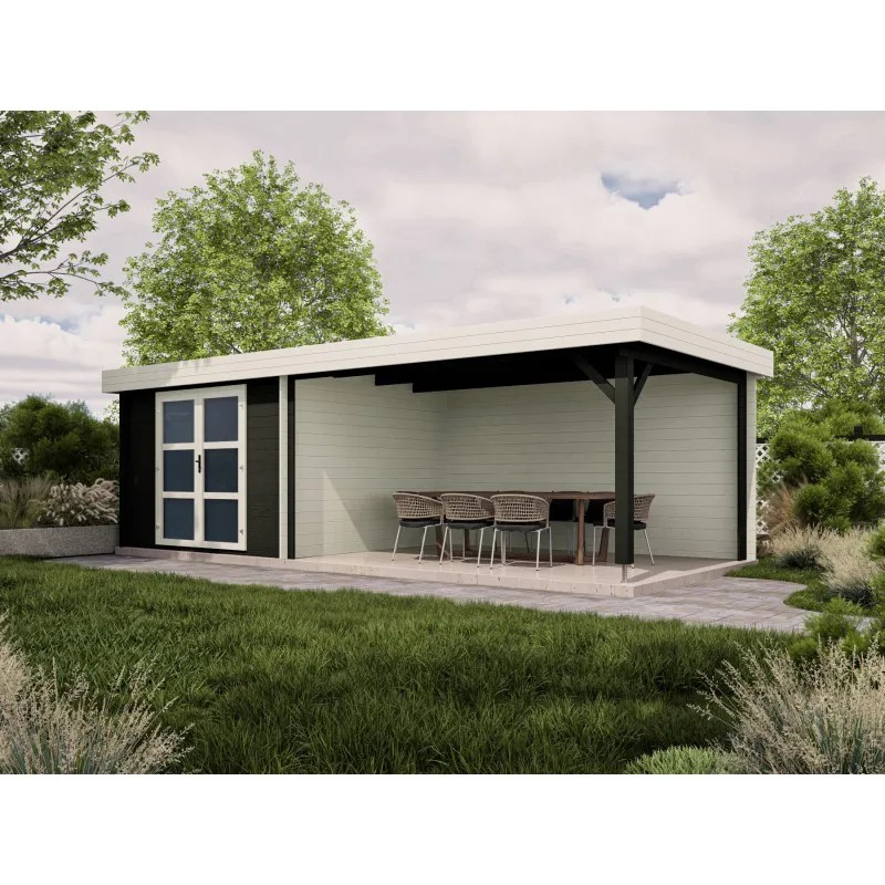 De stijl van een houten tuinhuis met overkapping kan sterk variëren, afhankelijk van jouw persoonlijke voorkeur en hoe je eigen woning eruit ziet. Er zijn traditionele blokhutten met een warme romantische uitstraling, maar ook moderne tuinhuizen met een strakke afwerking. Maar een strakke look met een plat dak en overkapping is weer perfect als je een binnenruimte voor je hobby met een overkapping wil combineren!