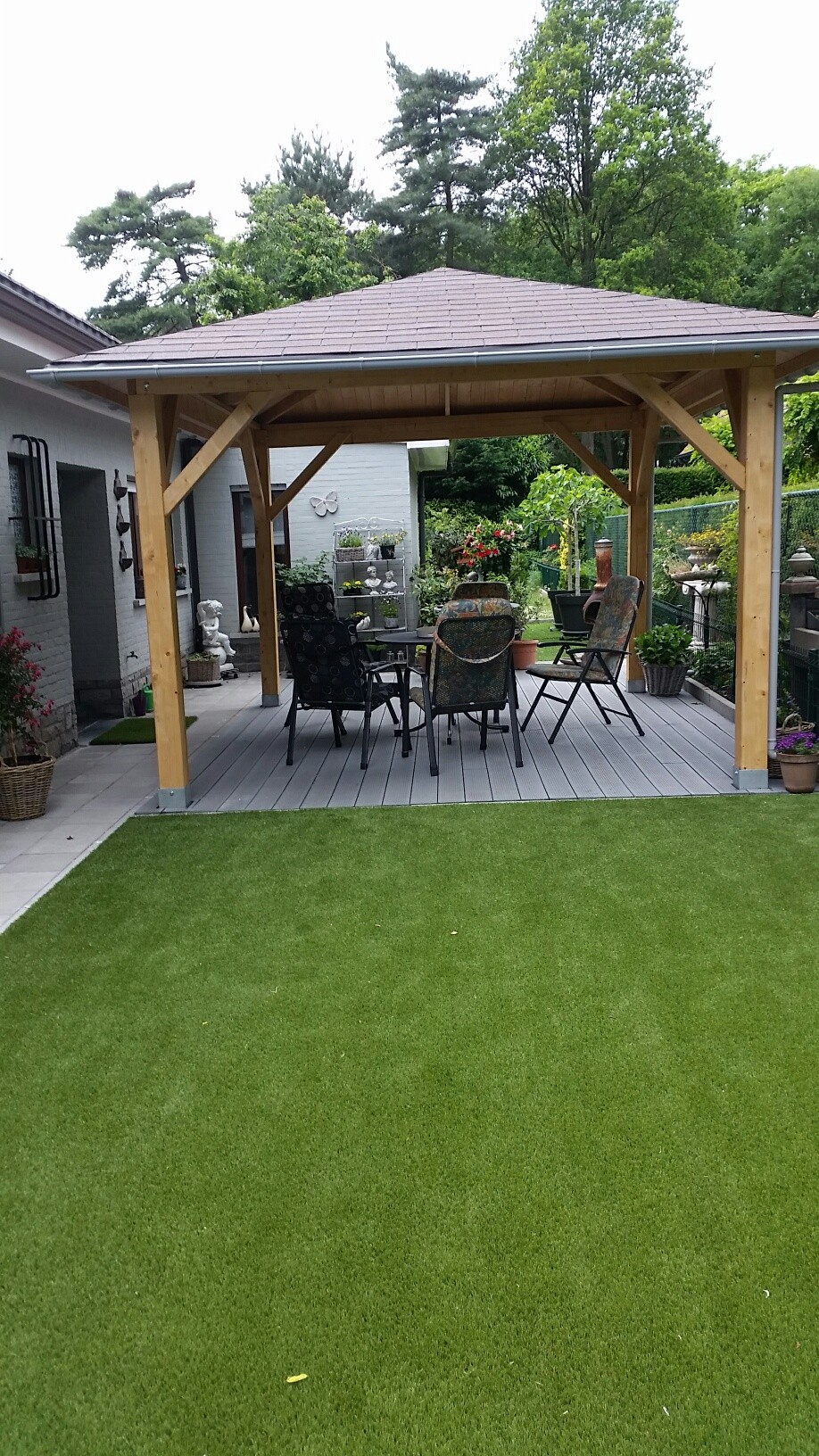 De stevige wanddikte van 45 mm en de traditionele blokhutbouw zorgen voor een solide constructie met een authentiek karakter. Of je het nu gebruikt als prieel, pergola of stijlvolle patio-overkapping – de Aruba past zich moeiteloos aan jouw wensen aan.