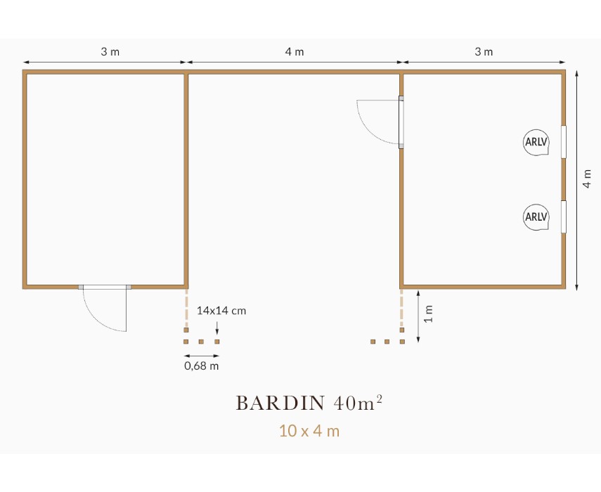 De berging beschikt over twee enkele deuren met roestvrijstalen deurbeslag en is voorzien van twee vaste aluminium ramen (type ARLV).