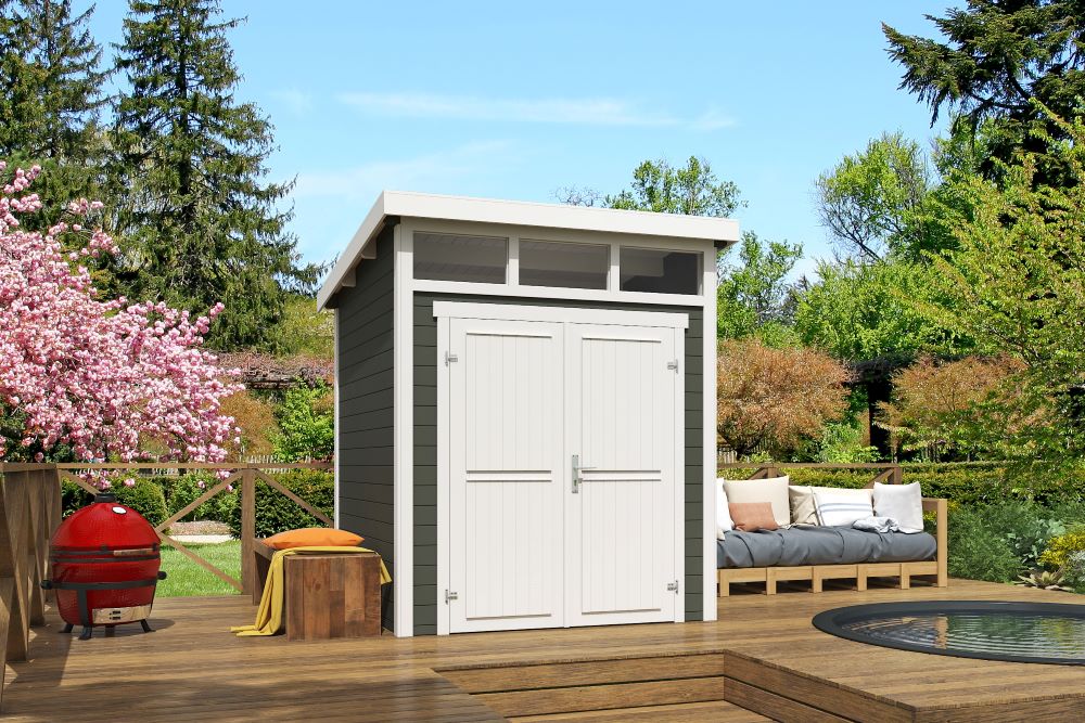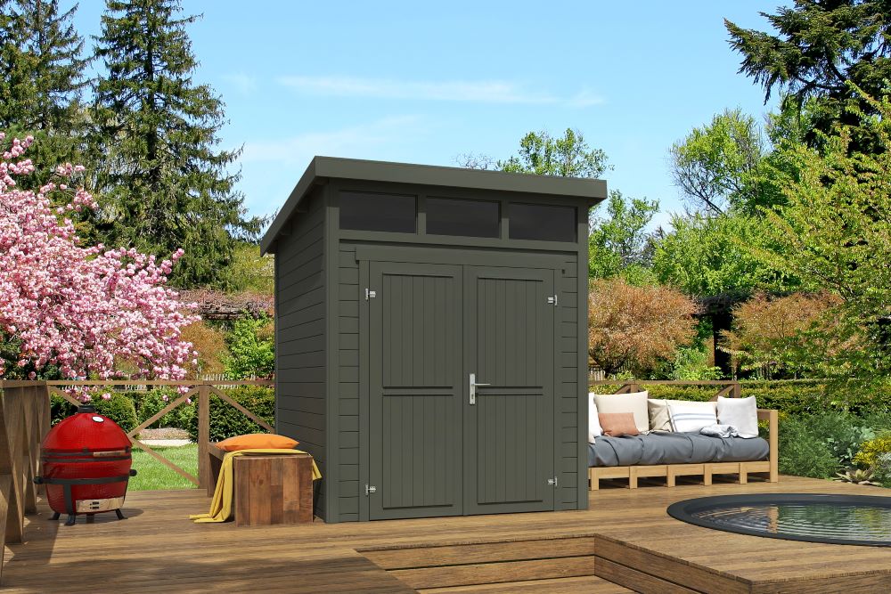 De blokhut Kibo 1 is een compacte en stijlvolle berging met een modern lessenaarsdak, perfect voor de kleinere tuin. Met zijn buitenmaten van slechts 200 x 200 cm neemt deze blokhut weinig ruimte in beslag, maar biedt hij toch voldoende plek om tuingereedschap en andere benodigdheden netjes op te bergen. De Kibo 1 wordt compleet geleverd met hang- en sluitwerk, een dubbele blinde deur en een vast raam voorzien van 1,5 mm helder PE-kunststof glas.En dankzij de meegeleverde montagehandleiding is de opbouw eenvoudig zelf te doen. De dakbedekking is niet inbegrepen, maar optioneel is er hoogwaardige EPDM beschikbaar. De blokhut wordt gratis bij u thuisbezorgd.
