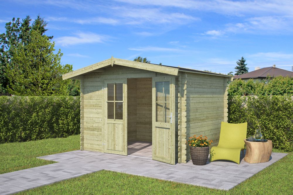 De blokhut Baltimore 292 x 230 cm is een elegante en praktische toevoeging aan elke tuin. Deze robuuste houten blokhut is uitgerust met een dubbele deur, wat zorgt voor een ruime doorgang en gemakkelijke toegang – ideaal voor het opbergen van fietsen, tuinmeubilair of gereedschap. Aan de voorzijde is de blokhut voorzien van een luifel van 50 cm, die niet alleen een charmante uitstraling geeft, maar ook extra beschutting biedt tegen regen of zon. De Baltimore combineert een klassieke vormgeving met een praktische indeling, waardoor hij zowel functioneel als decoratief perfect in de tuin past.