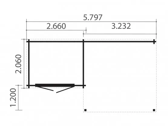 Funderingsmaat blokhut: 247 x 187 cm