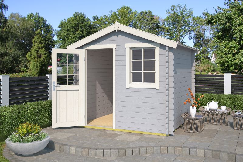 Met een buitenmaat van 230 x 230 cm biedt de Blokhut Wels 230 x 230 cm voldoende ruimte voor het veilig opbergen van tuingereedschap, fietsen, barbecueaccessoires of tuinmeubilair. Tegelijkertijd blijft de blokhut compact genoeg om ook in kleinere tuinen goed tot zijn recht te komen.