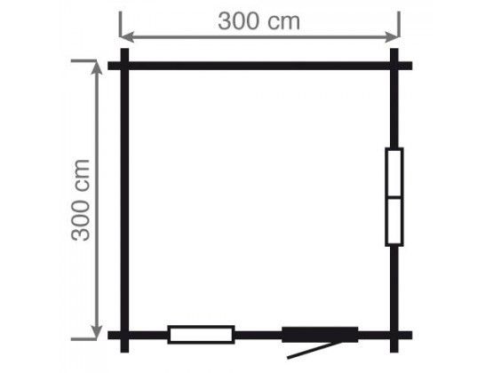Grandcasa Classic Chahute 300 x 300 cm Maatwerkmodel blokhut met een steil zadeldak. Gemaakt van kwalitatief Noord-Europees vurenhout. Inclusief: 1 Enkele deur 2 Uitzetramen Dakbedekking shingels keuze uit vier kleuren rood, groen, zwart of bruin Nokhoogte 401 cm Wandbalk dikte: 33 mm