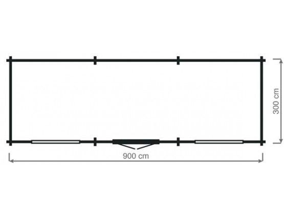 Blokhut Grandcasa Cosmos Lesbos Trendy en moderne blokhut van blank en onbehandeld Noord-Europees vuren. Inclusief: Dubbele deur met venster – matglas 4 mm 2 stuks ramen – helder glas 4 mm EPDM-folie Aluminium randafwerking (daktrim) Wandbalk dikte: 33 mm PVC dakgootset