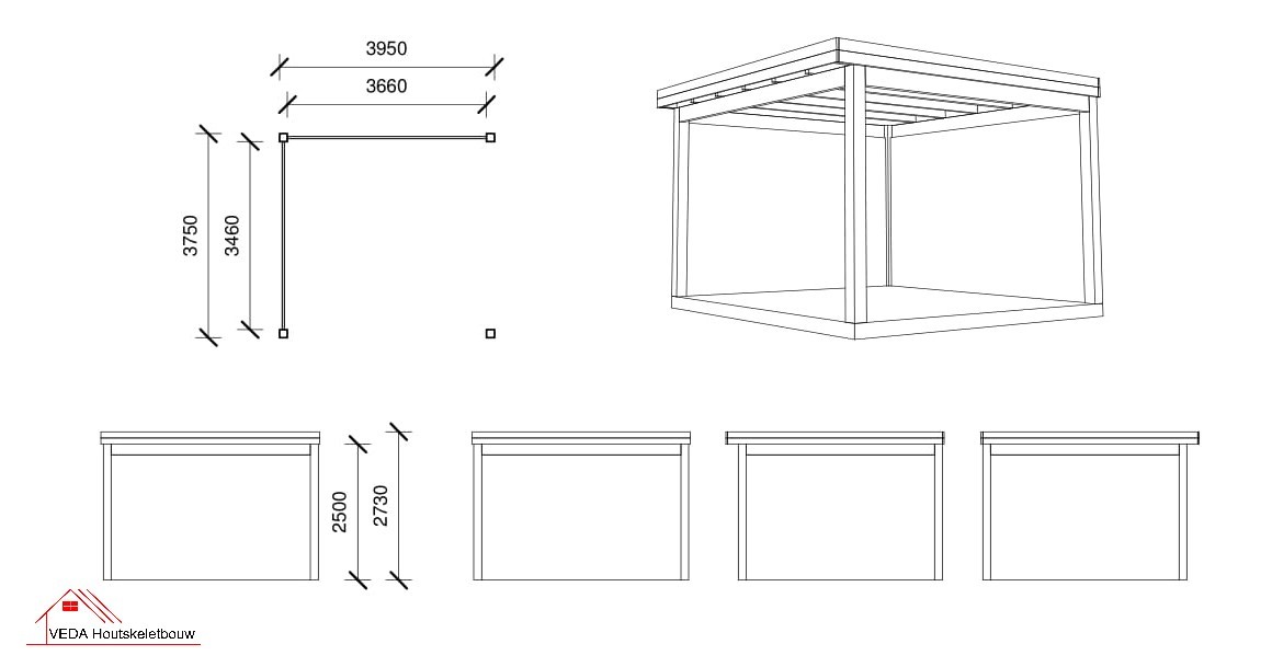 Robuuste Douglas overkapping – 395 x 395 cm