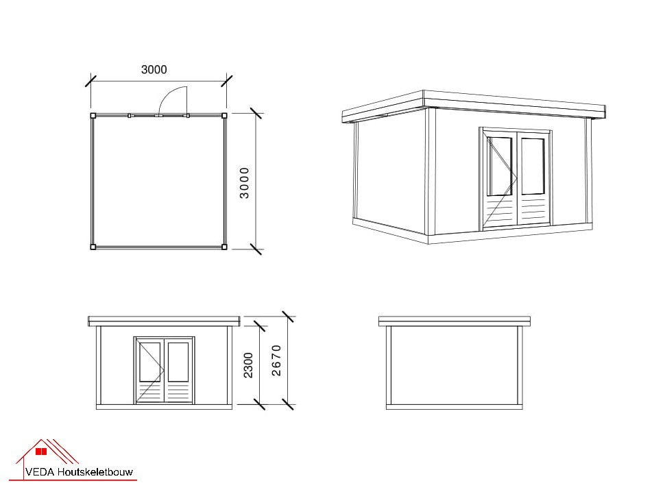 Douglas tuinhuis Dex – 300 x 300 cm – Robuuste uitstraling Productie: VEDA Houtskeletbouw Dubbele deur met venster Douglas palen geschaafd 14 x 14 cm Wanden enkelzijdig Zweeds rabat blank EPDM-folie en dak doorvoer Regenpijp tot maaiveld Prijs is inclusief montage tuinhuis  Graag zelf de montage uitvoeren? Vraag ons naar de mogelijkheden en uw prijsvoordeel.