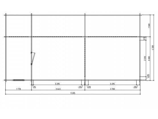 Blokhut Grandcasa Elegance Boldini Trendy en moderne combi blokhut met glasschuifwanden van blank en onbehandeld Noord-Europees vuren. Inclusief: 1 x 3 glas schuiframen 2 x 4 glas schuiframen Enkele dichte (blinde) deur Uitzetraam – enkel glas 4 mm Shingels: Kleurkeuze: zwart / bruin / groen of rood Wandbalk dikte: 33 mm