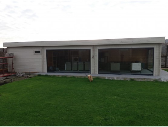 Door middel van de glas schuiframen ontstaat er een mooie tuinkamer,