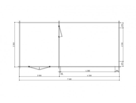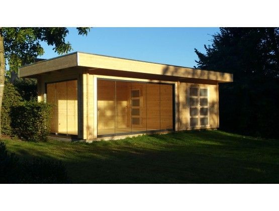 Blokhut Grandcasa Elegance Morientes Trendy en moderne combi blokhut met glasschuifwanden van blank en onbehandeld Noord-Europees vuren. Inclusief: 1 x 3 glas schuiframen 1 x 5 glas schuiframen Enkele deur met venster – matglas 4 mm Dubbele deur met venster – matglas 4 mm EPDM-folie Aluminium randafwerking (daktrim) Wandbalk dikte: 33 mm Dakgootset