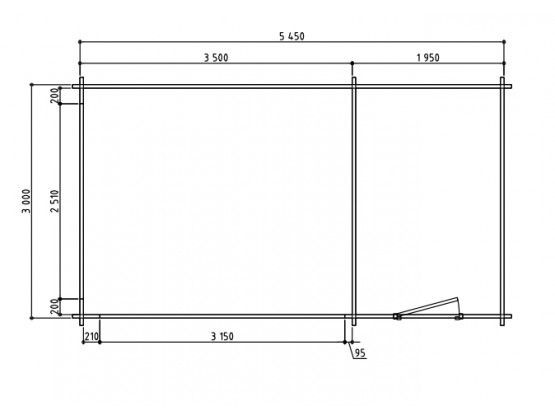 Blokhutgedeelte: 200 x 300 cm – met volle dichte enkele deur