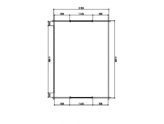 Blokhut Grandcasa Elegance Tata Trendy en moderne blokhut met glasschuifwanden van blank en onbehandeld Noord-Europees vuren. Inclusief: 1 x 5 glas schuiframen 2 stuks vast raam – helder glas 4 mm EPDM-folie Aluminium randafwerking (daktrim) Wandbalk dikte: 33 mm Dakgootset