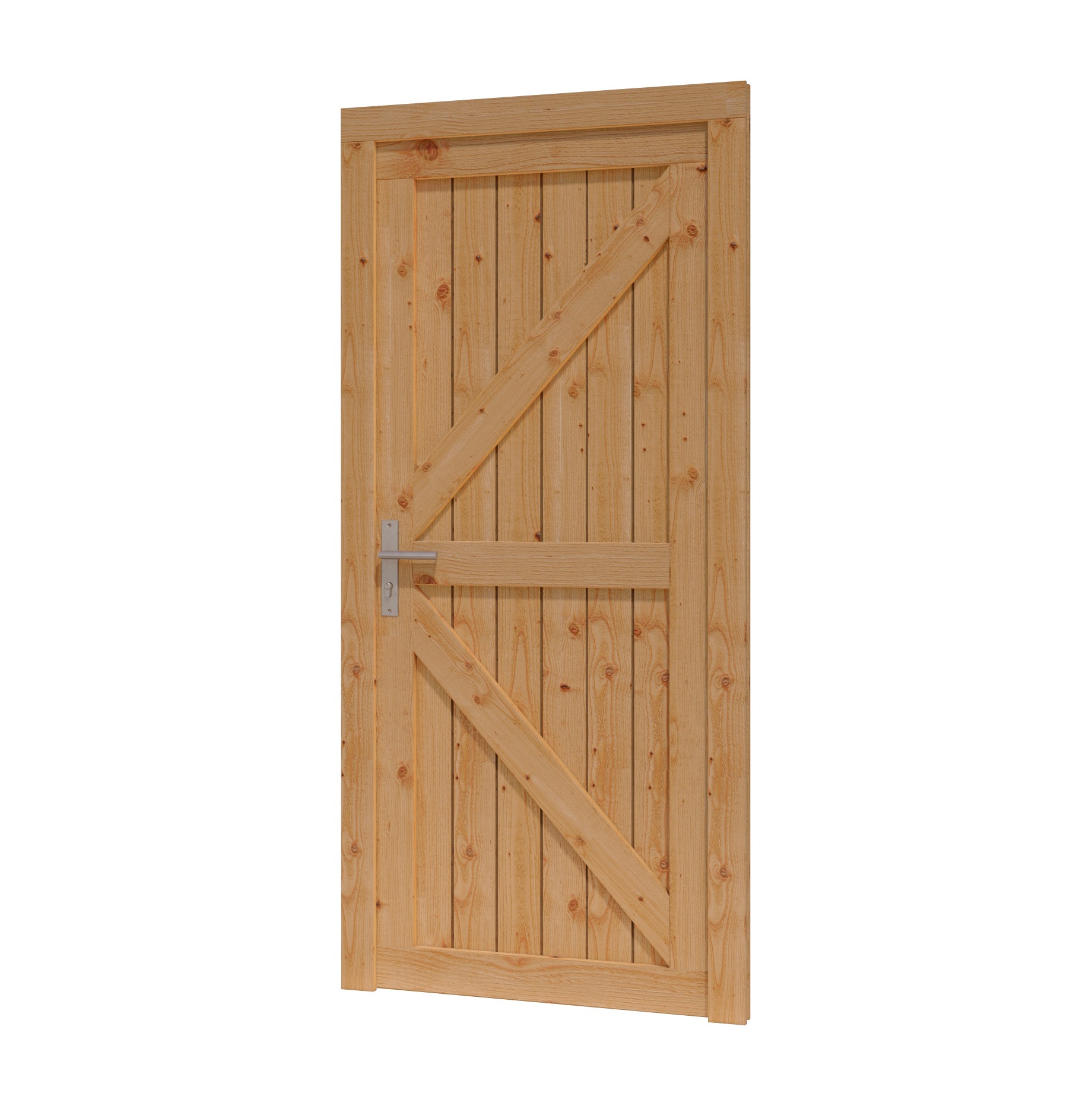 Deze opgeklampte deur is onbehandeld, wat betekent dat u deze zelf kunt afwerken met de verf, beits of olie die u mooi vindt. Hierdoor kunt u de deur volledig afstemmen op de stijl van uw buitenverblijf en uw persoonlijke smaak.