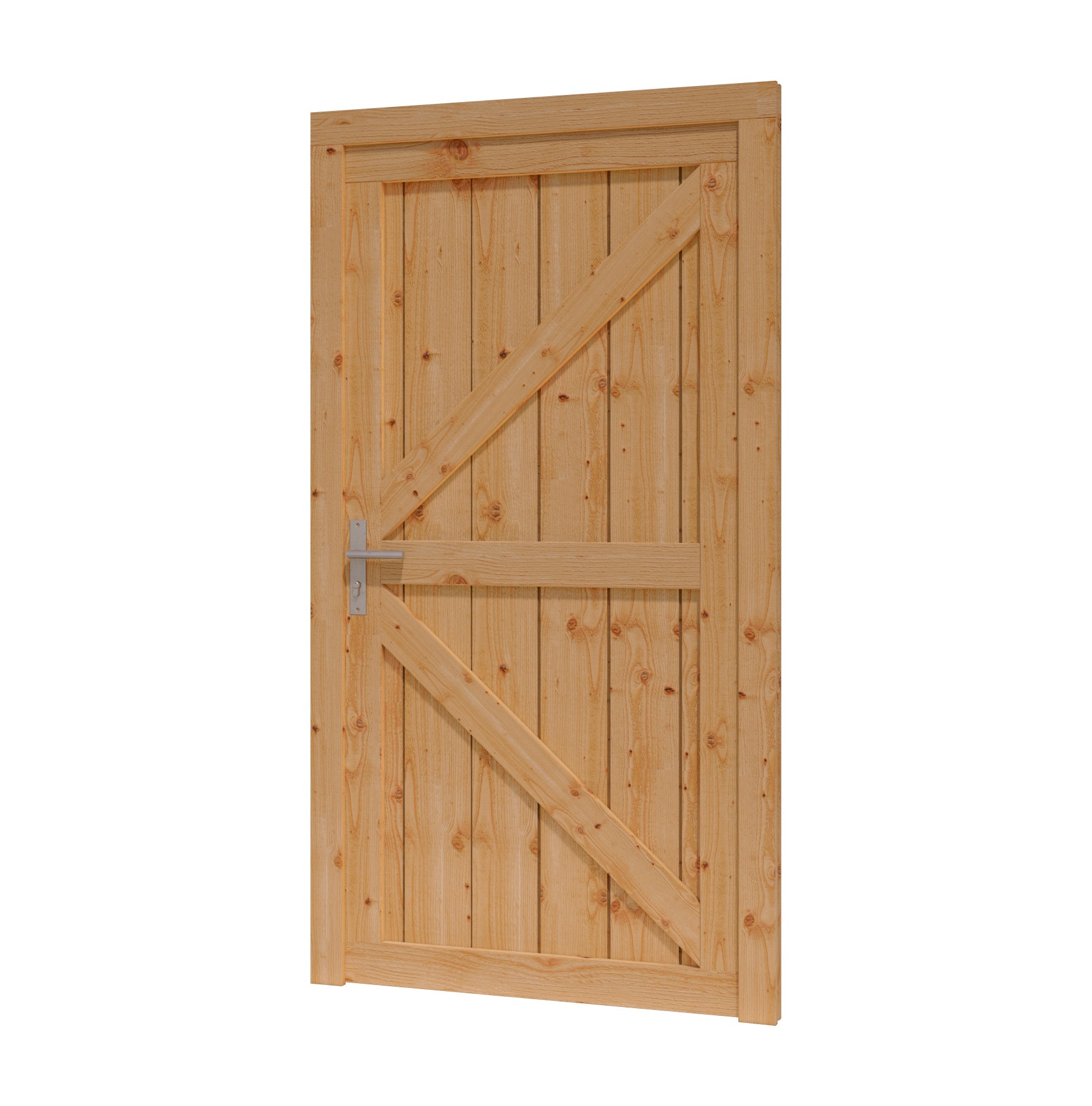 Deze opgeklampte deur is onbehandeld, wat betekent dat u deze zelf kunt afwerken met de verf, beits of olie die u mooi vindt. Hierdoor kunt u de deur volledig afstemmen op de stijl van uw buitenverblijf en uw persoonlijke smaak.