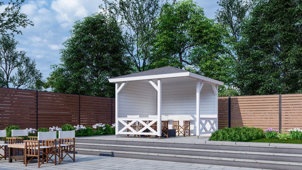 Een groot pluspunt is het dak: dit bestaat uit voorgemonteerde dakelementen, waardoor het paviljoen eenvoudig zelf te monteren is. Ideaal voor de doe-het-zelver die snel wil genieten van een professioneel eindresultaat.