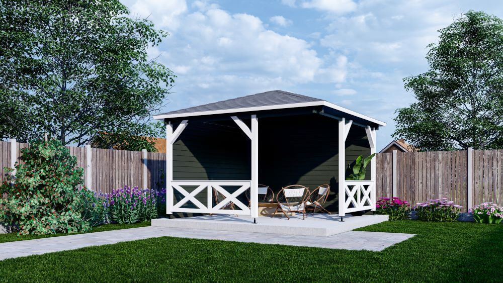 Een groot pluspunt is het dak: dit bestaat uit voorgemonteerde dakelementen, waardoor het paviljoen eenvoudig zelf te monteren is. Ideaal voor de doe-het-zelver die snel wil genieten van een professioneel eindresultaat.