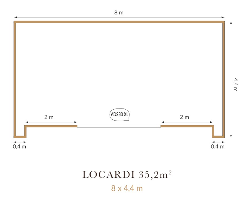 Hoogte 2,67 m Buitenwand in basalt wandplaten, breedte 1250 mm, wit ral 9010, dikte 8 mm Plafond inham afgewerkt in basalt wandplaten, breedte 1250 mm, wit ral 9010, dikte 8 mm Thermowood wandbekleding profiel W 26 x 132 cm – ribben 60 mm Alu schuiframen van 300 of 350 x 227 cm H, antraciet EPDM dakbedekking met aluminium afwerking en dakdoorvoer Dakgoot incl. Alu dakprofiel H 6 cm, inox Zwarte vochtwerende doek tussen buitenbekleding en skelet