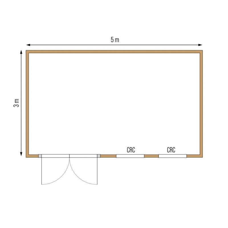 Houtskeletbouw Deco Cubia – Model Rego – zwarte coating – Dubbele deur en 2 uitzetramen – Voor een optimaal resultaat adviseren wij een betonplaat te storten – Ook verkrijgbaar in groen geïmpregneerd of wit gecoat – Levering alleen mogelijk in Nederland
