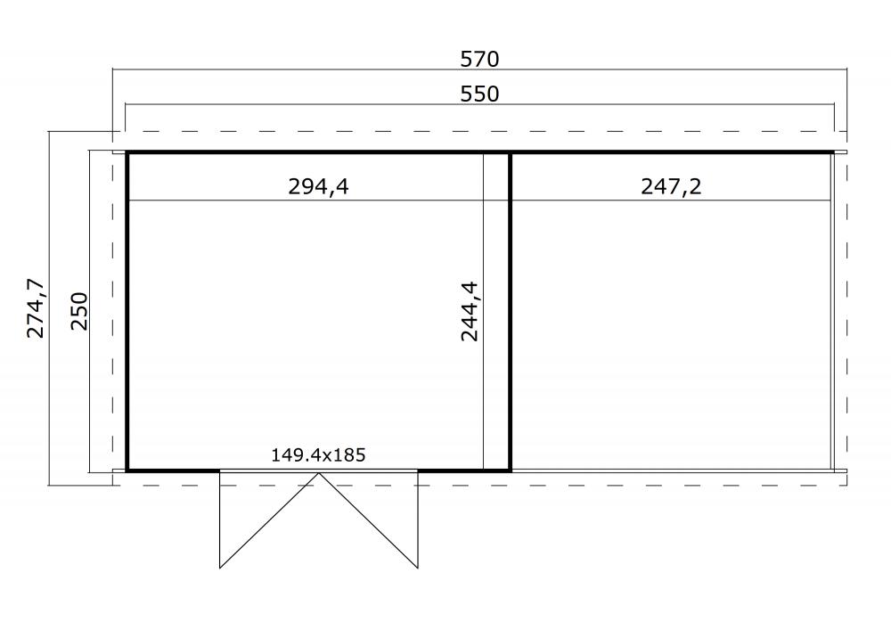 Tuinhuis met overkapping Kjeld 550 x 250 cm Inclusief: Hang en sluitwerk Dubbele deur blind Benodigde bevestigingsmaterialen Dakverankeringset Montagehandleiding Exclusief: Dakbedekking – zie optie EPDM-folie Montage van dit model is ook in spiegelbeeld mogelijk. Gratis thuisbezorgd