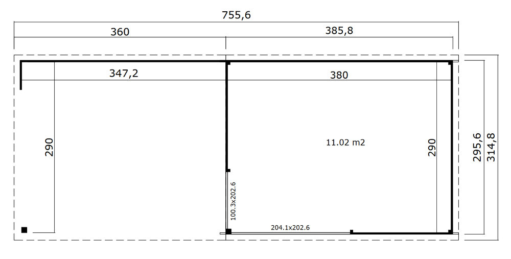 Het modern vormgegeven Tuinhuis Olivia heeft een royale funderingsmaat van 735 cm x 295 cm, met een overkapping van 350 cm breed. De wanden zijn opgebouwd uit 28 mm dikke vurenhouten delen met mes-en-groefverbinding, wat zorgt voor een degelijke en duurzame constructie. Dankzij de stapelbouwmethode in combinatie met hoekpalen en een schroefsysteem staat dit tuinhuis als een huis.
