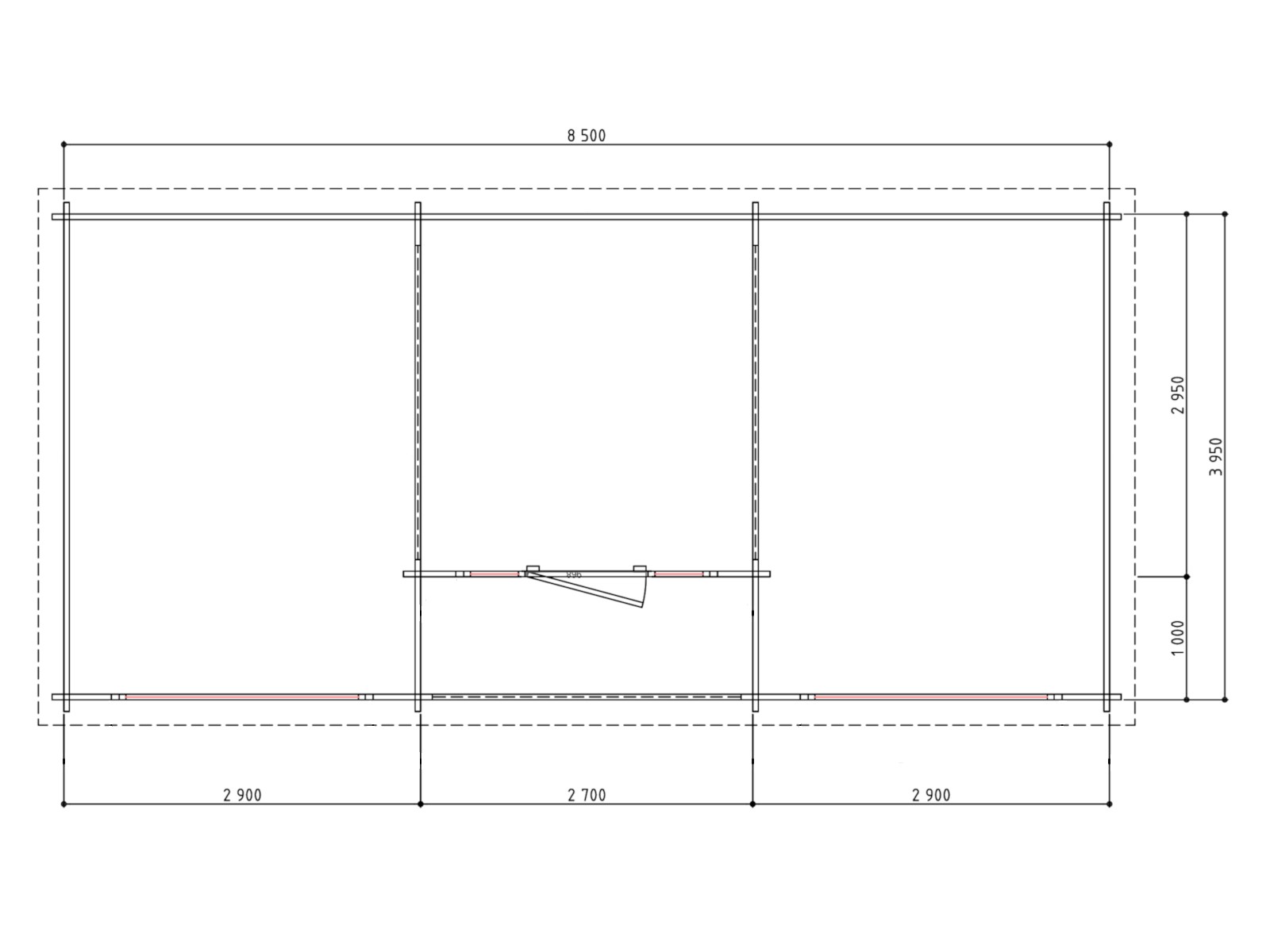 Deze stijlvolle tuinkamer beschikt over een plat dak en een centrale inpandige luifel, waarin de deur elegant is verwerkt. Voor optimaal licht en comfort is het model uitgerust met een enkele glasdeur en twee grote vaste aluminium ramen met hoogrendement isolatieglas