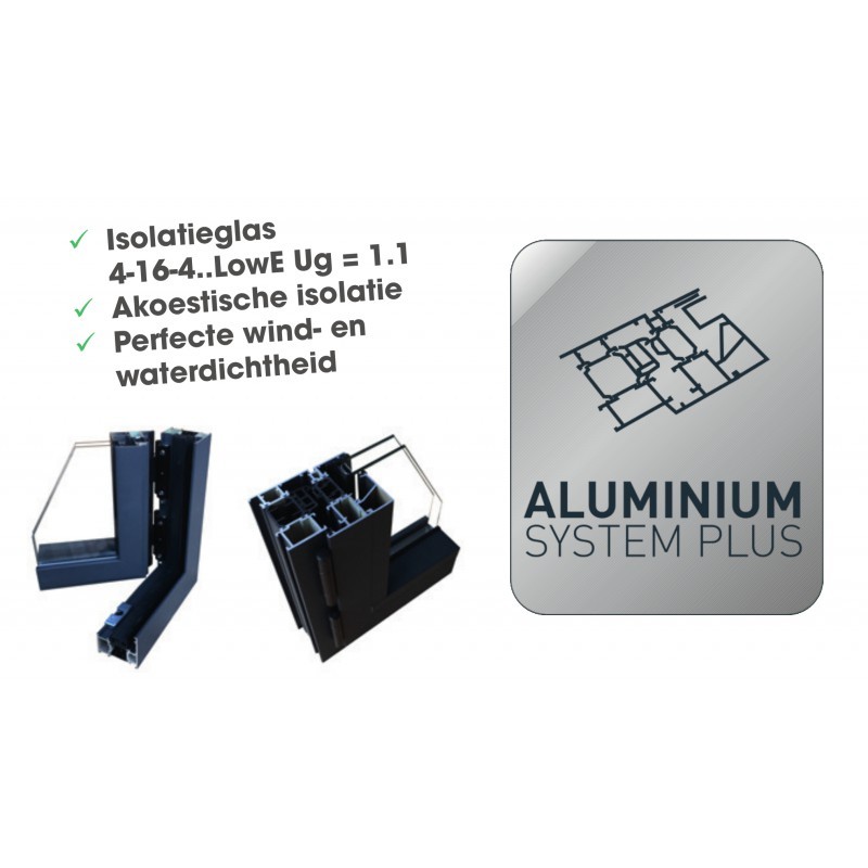 De grote glaspartijen zorgen voor een prachtige natuurlijke lichtinval en creëren een aangename, inspirerende werkomgeving. Het model is uitgerust met een grote aluminium schuifdeur, één groot vast raam en twee horizontale vaste ramen, wat bijdraagt aan een moderne uitstraling én optimaal comfort.